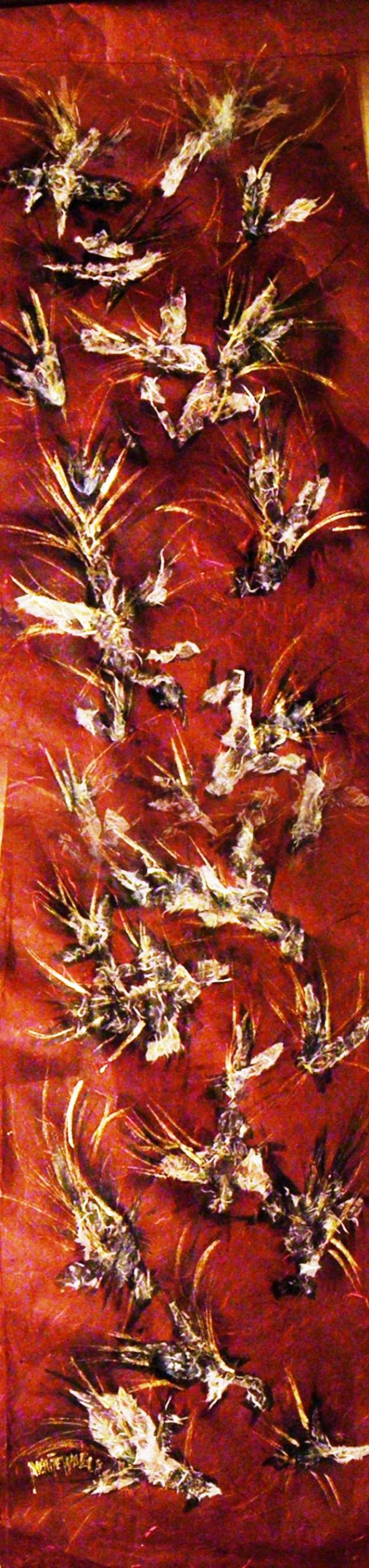 Menthe Wells Birds 24”w x 96”h acrylic mixed media 1 of 6 panels
